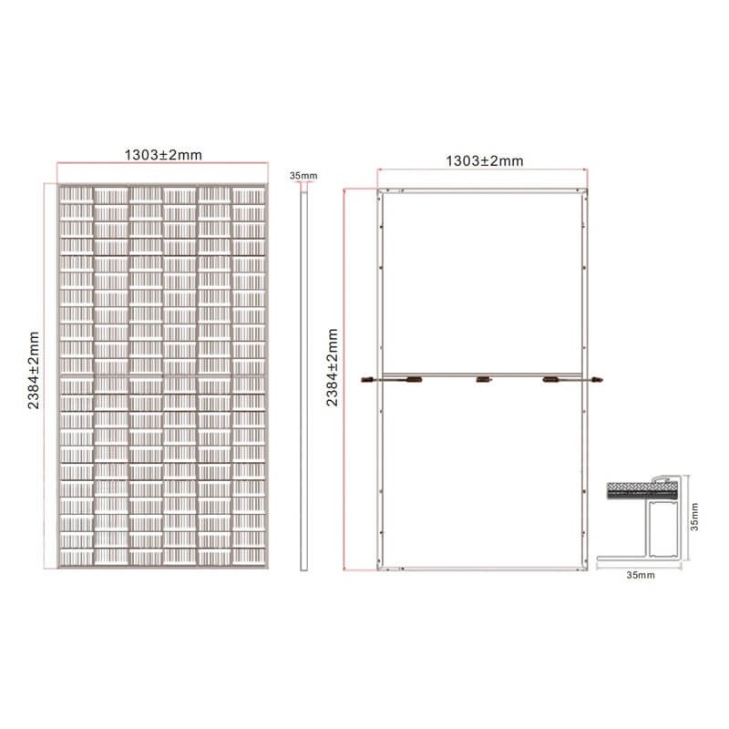 Dimensions : 2384+2mmx1303±2mmx35±1mm