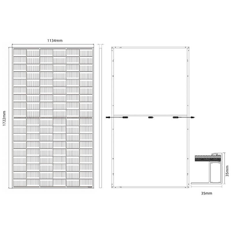 | STC | Irradiância 1000 W/m², temperatura do módulo 25°C, AM=1,5; Melhor simulador solar da classe AAA (IEC 60904-9) usado | ||
