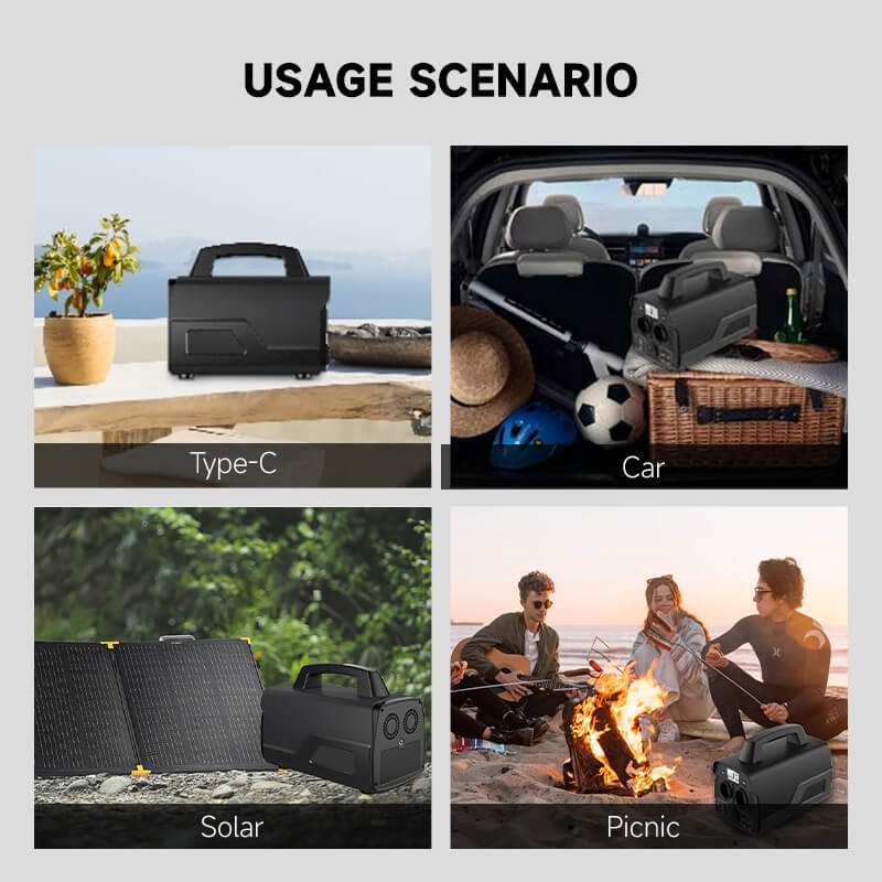 É um sistema de bateria portátil fora da rede, também chamado de gerador solar portátil/sistema de armazenamento de energia/caixa de energia/banco de energia CA, etc.