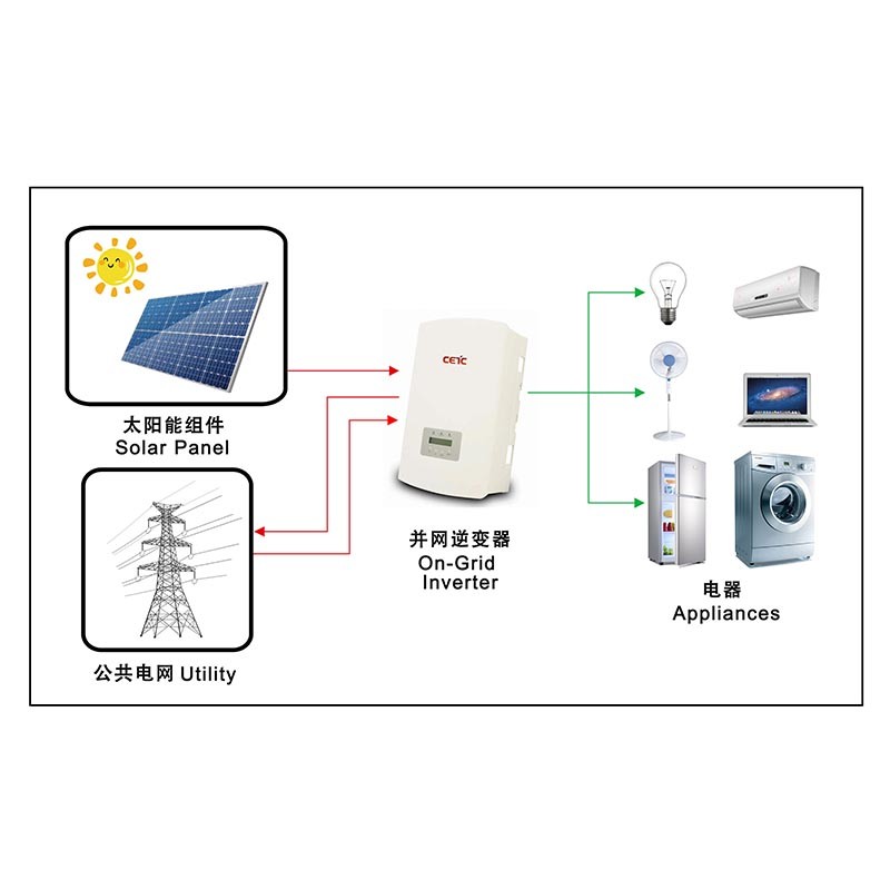 O painel solar gera uma energia DC sob a luz do sol, que é convertida em uma energia AC com a mesma frequência e a mesma frequência na rede através do inversor conectado à rede fotovoltaica e, em seguida, conecte-se à rede. Quando a energia em tempo real do sistema fotovoltaico é maior que o consumo de carga local em tempo real, o sistema de energia pode enviar energia CA para a rede elétrica; quando uma capacidade em tempo real é menor que o consumo de carga local em tempo real, a rede elétrica CA pode fornecer diretamente à carga, ao sistema de energia e à rede elétrica ao mesmo tempo para fornecer a carga.